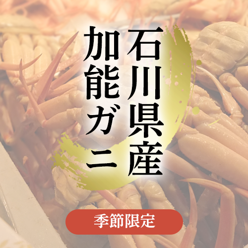 栄養豊富な日本海で育った加能ガニの太い脚には、殻を割るとあふれそうなくらいに身がぎっしり!茹でればその身は甘く、繊細な旨味を堪能できます。甲羅の濃厚な味噌は独特の風味から珍重されております。