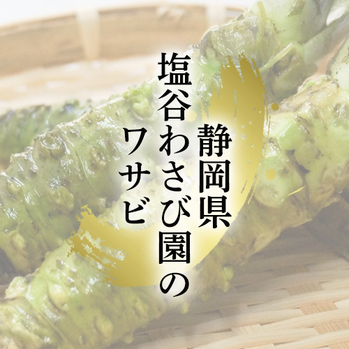 江戸時代より続くわさび農家の四代目「塩谷さん」が作るわさびは静岡県の棚田10選にも選ばれており、和食には外せない逸品。表面のガツンとくる辛味、芯はほのかに甘く粘り気があるのが特徴。